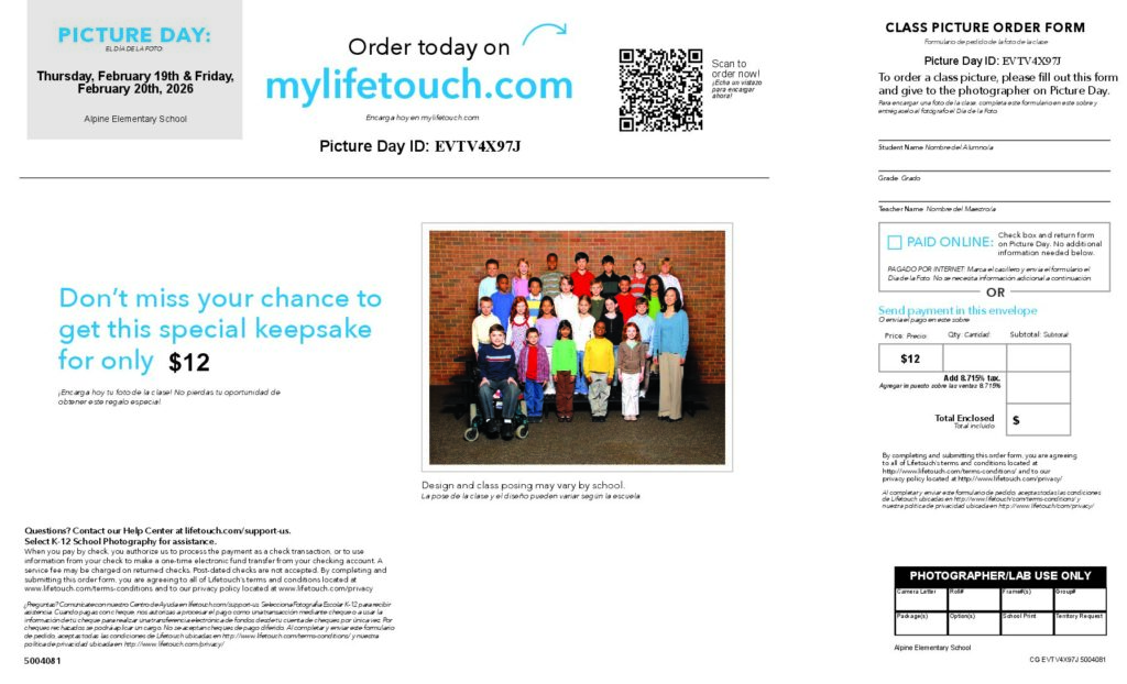 Thursday, February 19 & Friday, February 20: Spring Pictures & Classroom Group Picture